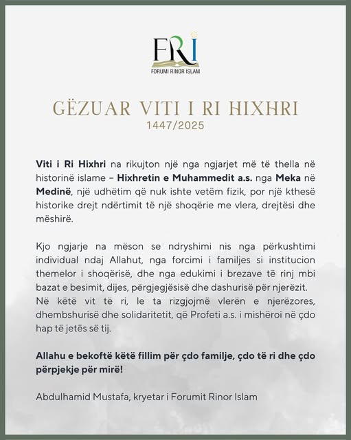 Le të jetë ky vit një nisje e re drejt përmirësimit shpirtëror, forcimit të vlerave dhe ndërtimit të një shoqërie me drejtësi, mëshirë dhe dashuri.