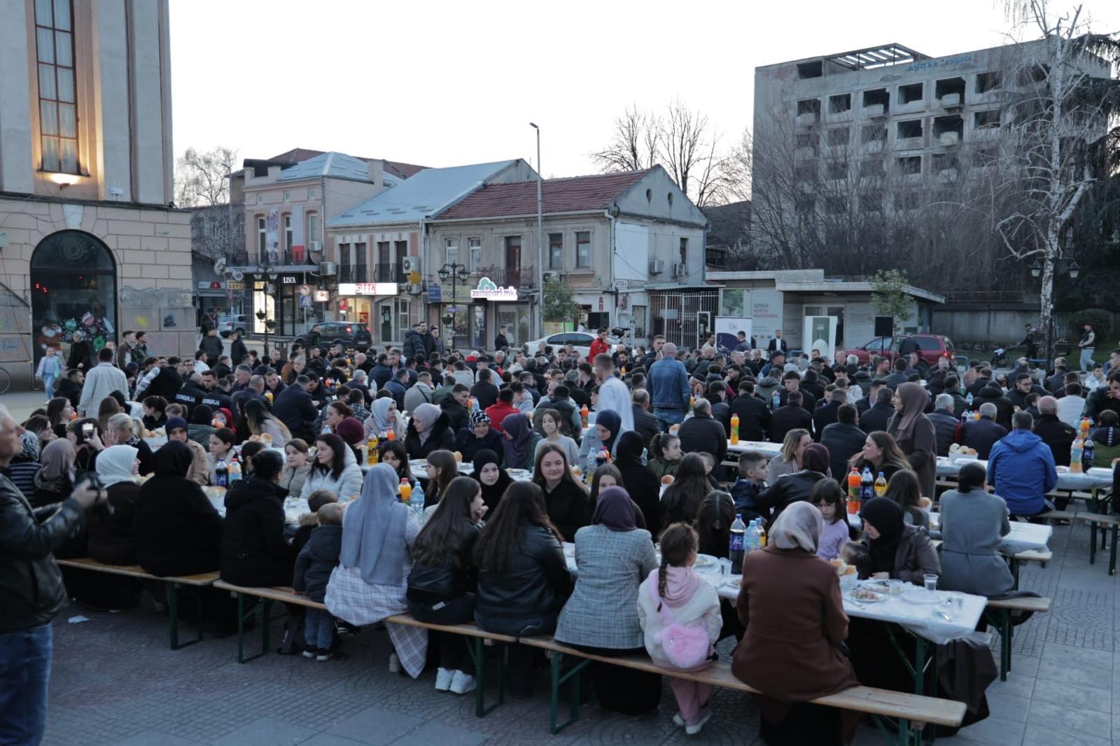 FRI – Dega Kumanovë dhe Komuna e Kumanovës organizuan iftarin tradicional në qendër të qytetit të Kumanovës, ku morën pjesë qytetarë të shumtë që u mblodhën për ta ndarë së bashku atmosferën e muajit të bekuar të Ramazanit.