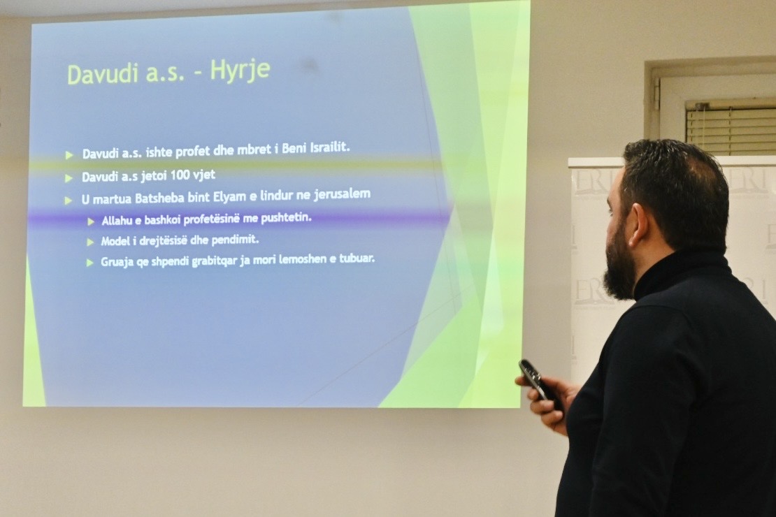 Ligjëratën e mbajti hoxhë Mr. Hasan Baftijari, i cili foli për shembullin e drejtësisë, urtësisë dhe përgjegjësisë në udhëheqje, duke u bazuar në jetën dhe misionin e pejgamberëve Davud a.s. dhe Sulejman a.s. U theksua se pushteti në Islam është amanet dhe duhet të ushtrohet me drejtësi, përulësi dhe bindje ndaj Zotit.